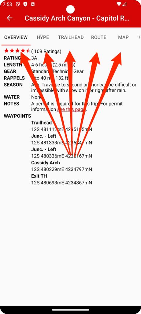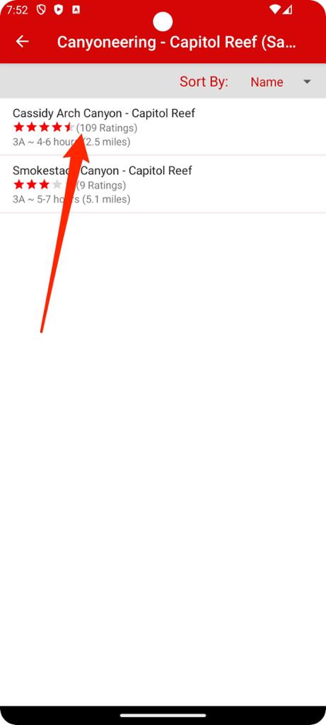 Step 3 - From the list of all available areas. Tap on an area to view its details. Capitol Reef in our example.