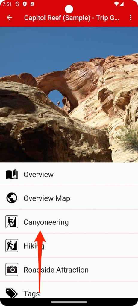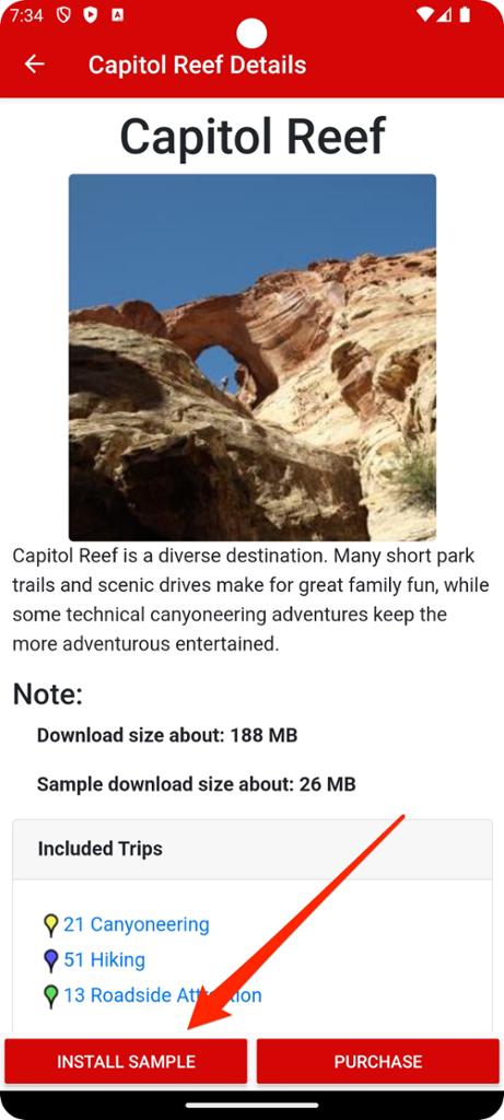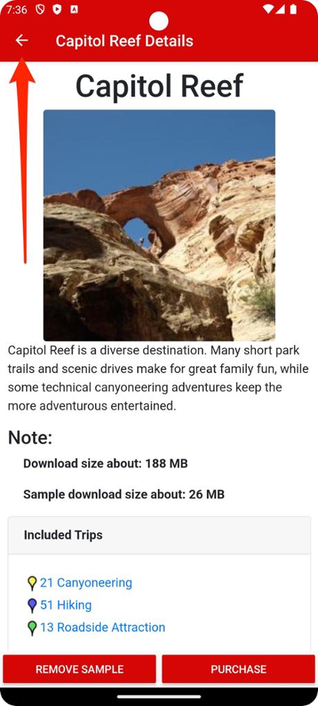 Step 7 - Tap Capitol Reef (Sample) to see the area details.