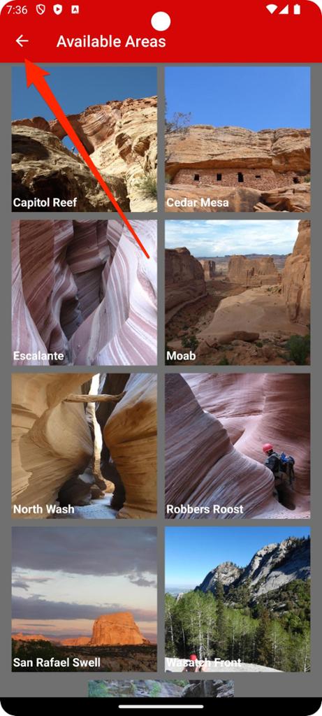 Step 5 - Tap the back arrow at the top left corner of the screen to go back to the list of available areas.