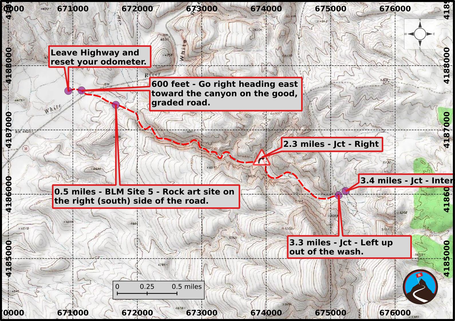 If driving the route, once you reach the junction at mile 3.4 that is a good dirt road going north/south you can go north to reach NV-318 in just over 3 miles at the bottom of the White River Narrows making a loop of the drive.