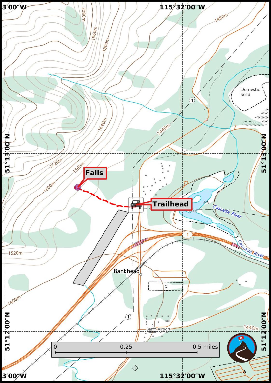 From the parking area, follow the trail as it heads west along the grassy field. It then enters the trees and climbs steeply to the falls. The last section before the base of the falls is a bit steep and loose.