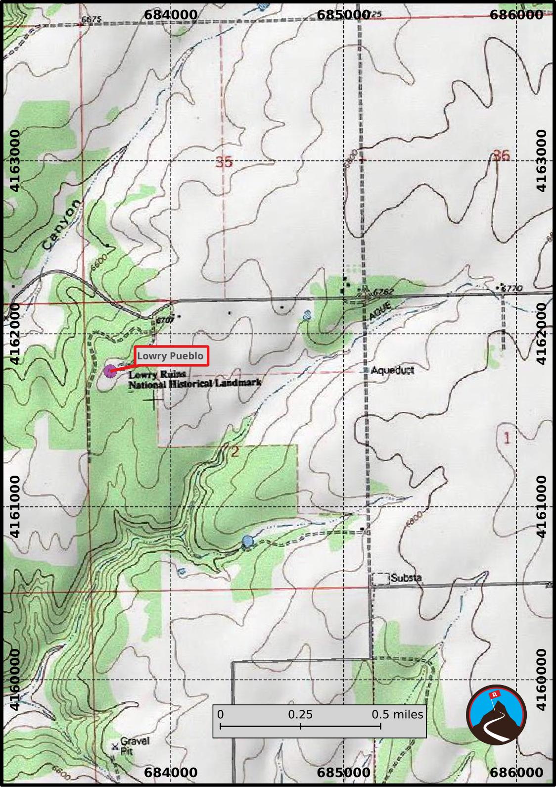 From the small town of Pleasant View, CO, follow County Road CC west toward for 8.3 miles. Turn south here on Country Road 7.25, which is signed Lowry Pueblo. The parking area is 0.25 miles ahead.