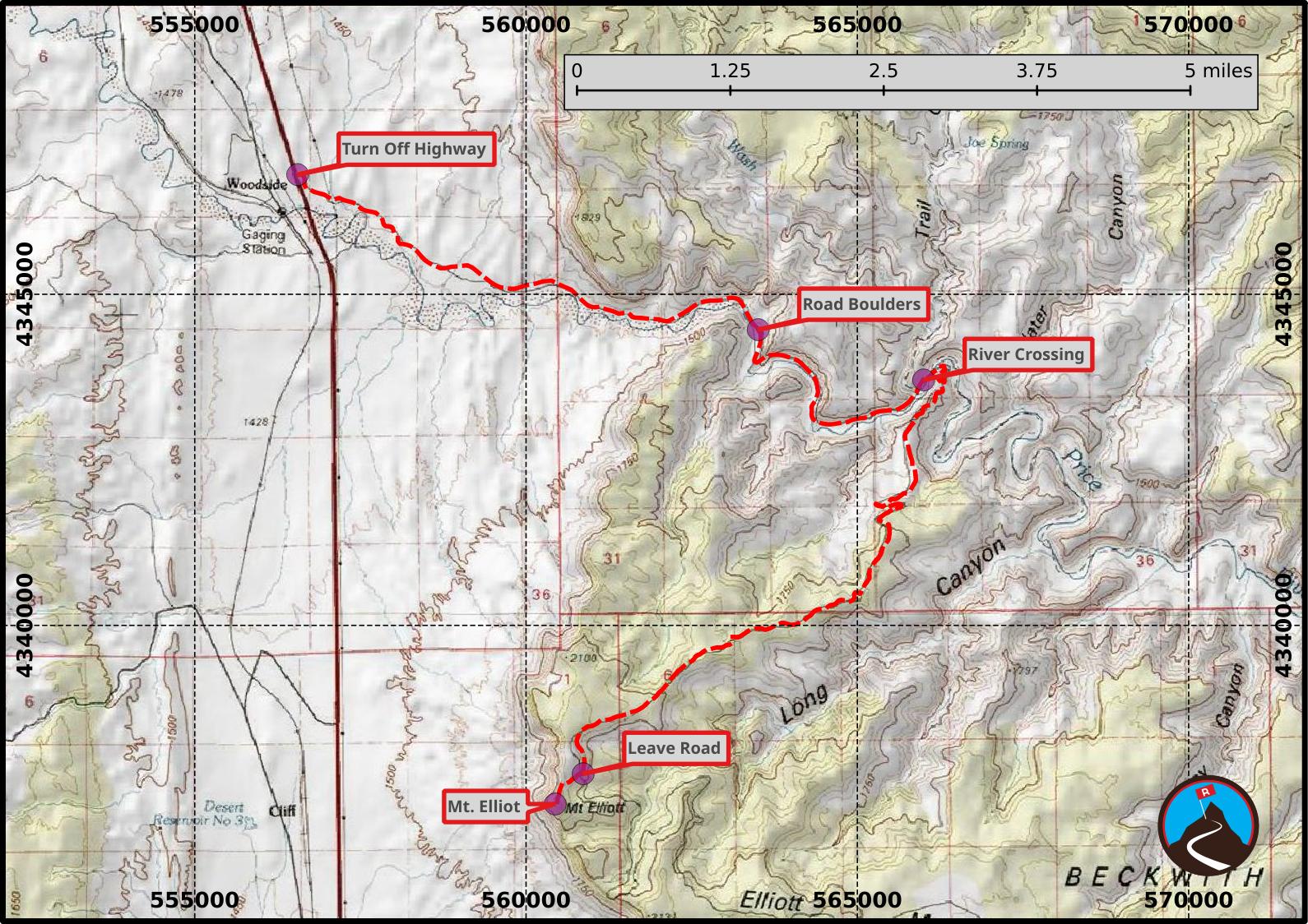I had wanted to do the hike for a long time, but it never seemed to bubble to the top of the list. Finally, in the winter of 2019, I had an opportunity to do the hike. It turns out in the summer of 2018 the BLM put substantial effort into maintaining the road to the rim (a short distance past Mount Elliot). By the end of summer 2018, it was possible to drive a full-size pickup to near Mount Elliot.