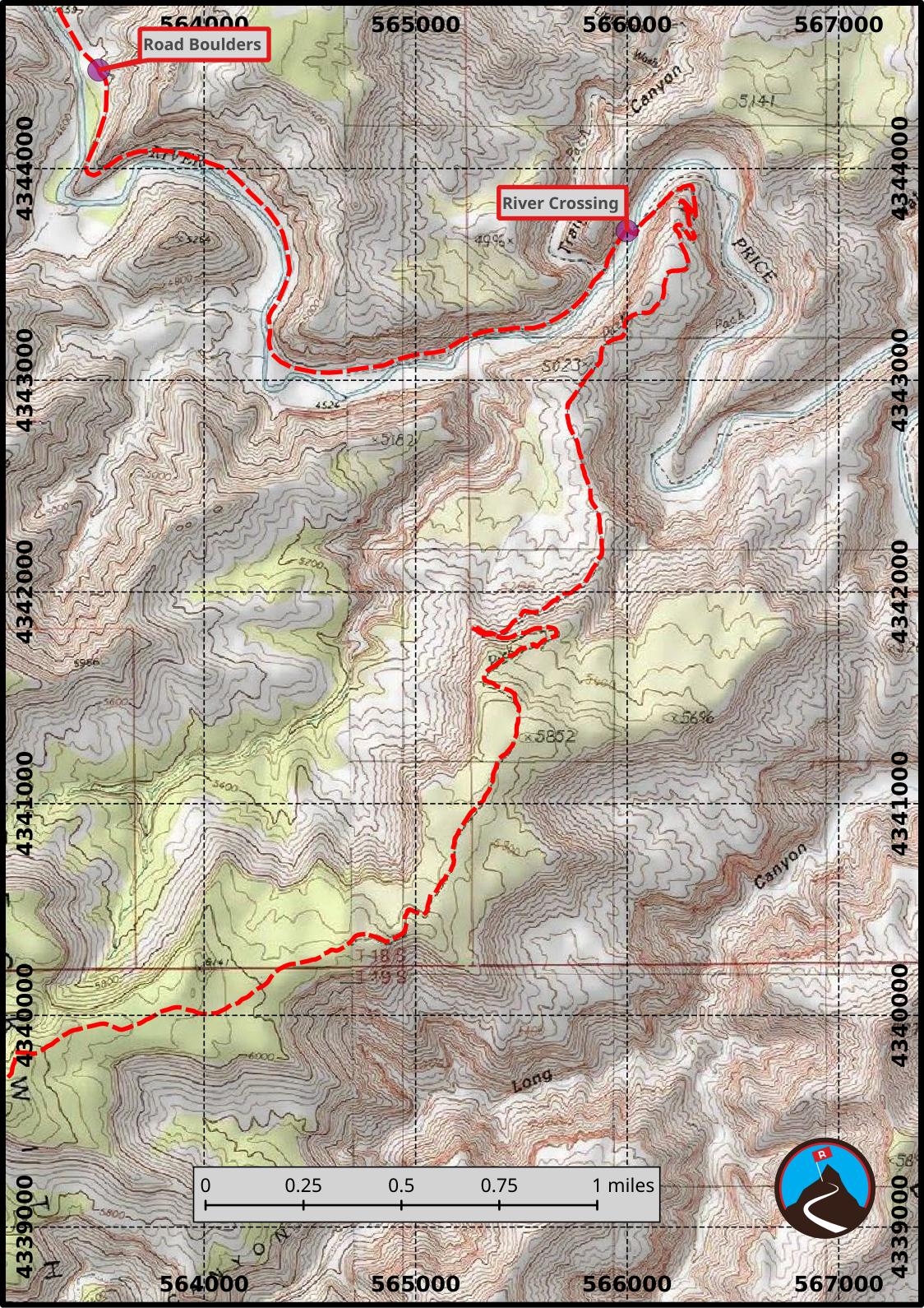 5.1 miles from UT-6 the BLM has placed large boulders next to the road and signed it as a dead end.