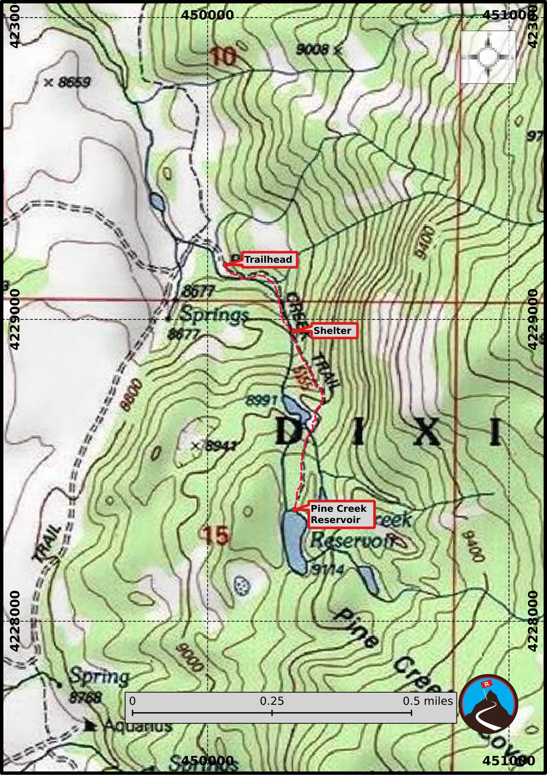 Another 0.25 miles beyond this first small pond is Pine Creek Reservoir.
