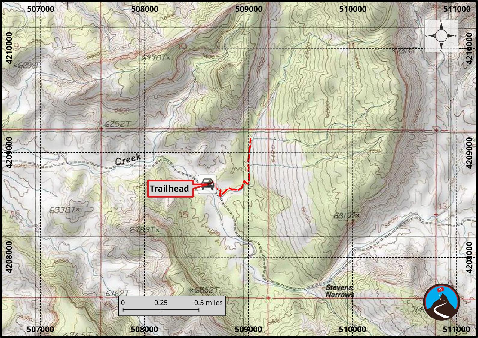 Travel east out of Capitol Reef National Park on highway 24. Just past the park, 0.25 miles, is the well signed Notom road. Turn right onto the Notom Road and follow it for 13.6 miles to the Sandy Ranch Junction on the left (east) side of the road.