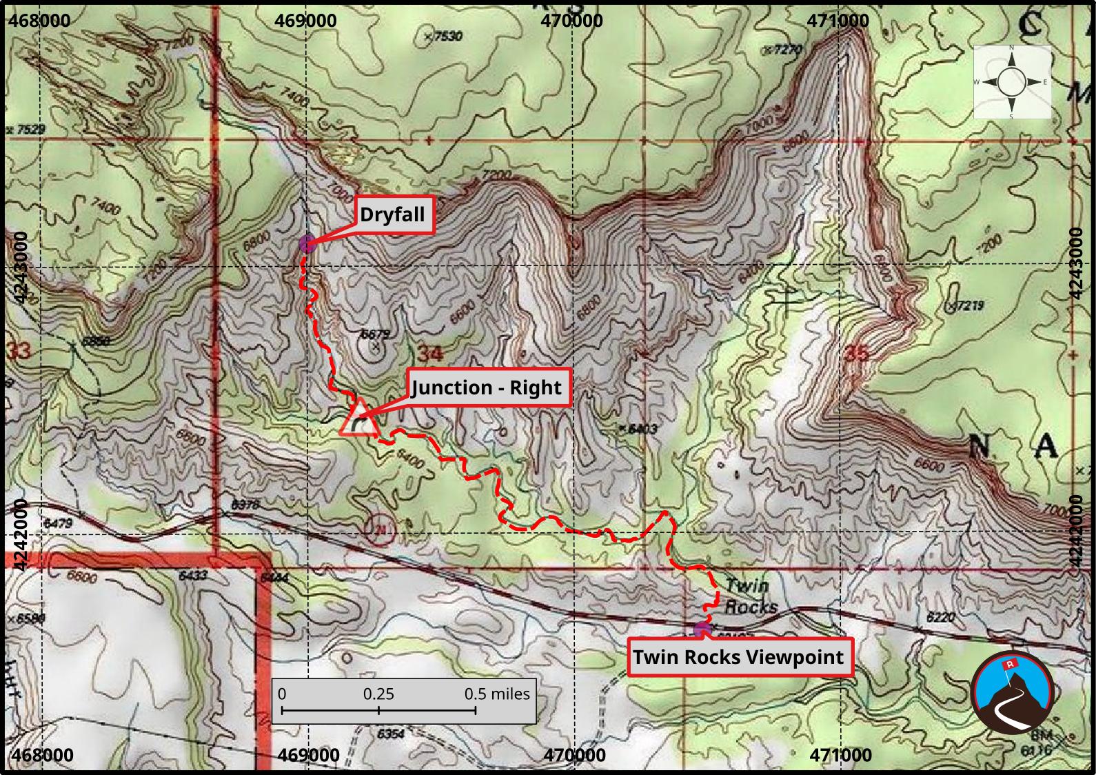 Many visitors make the road side stop to see and photograph the Twin Rocks. A small percentage of those wander up to the base of Twin Rocks to see it up close. I think wandering up and looking through the small "window" between the towers is a worthwhile short stroll.