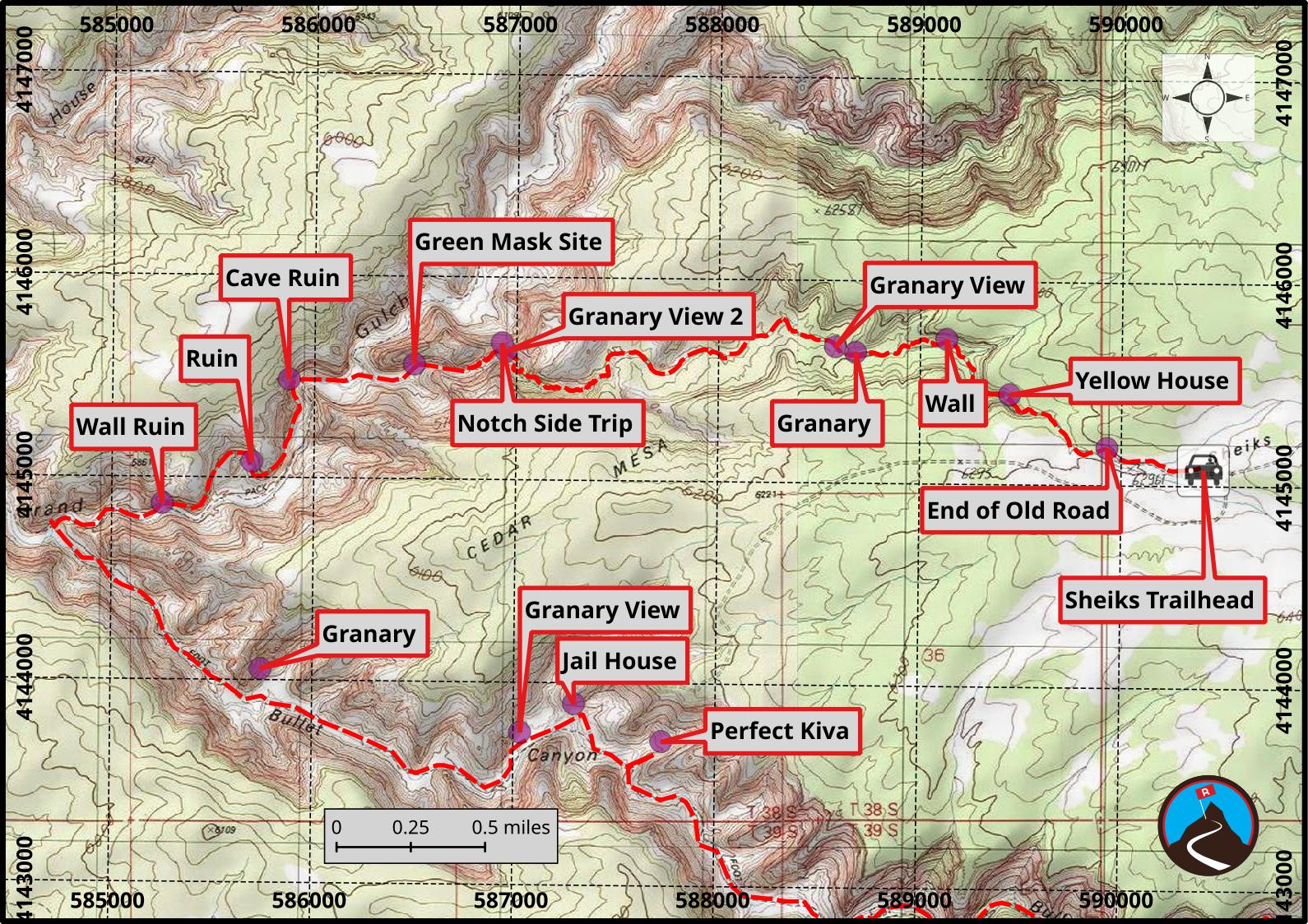 Green Mask Ruin to Sheiks Trailhead (3.4 miles / 1.5-3 hours)