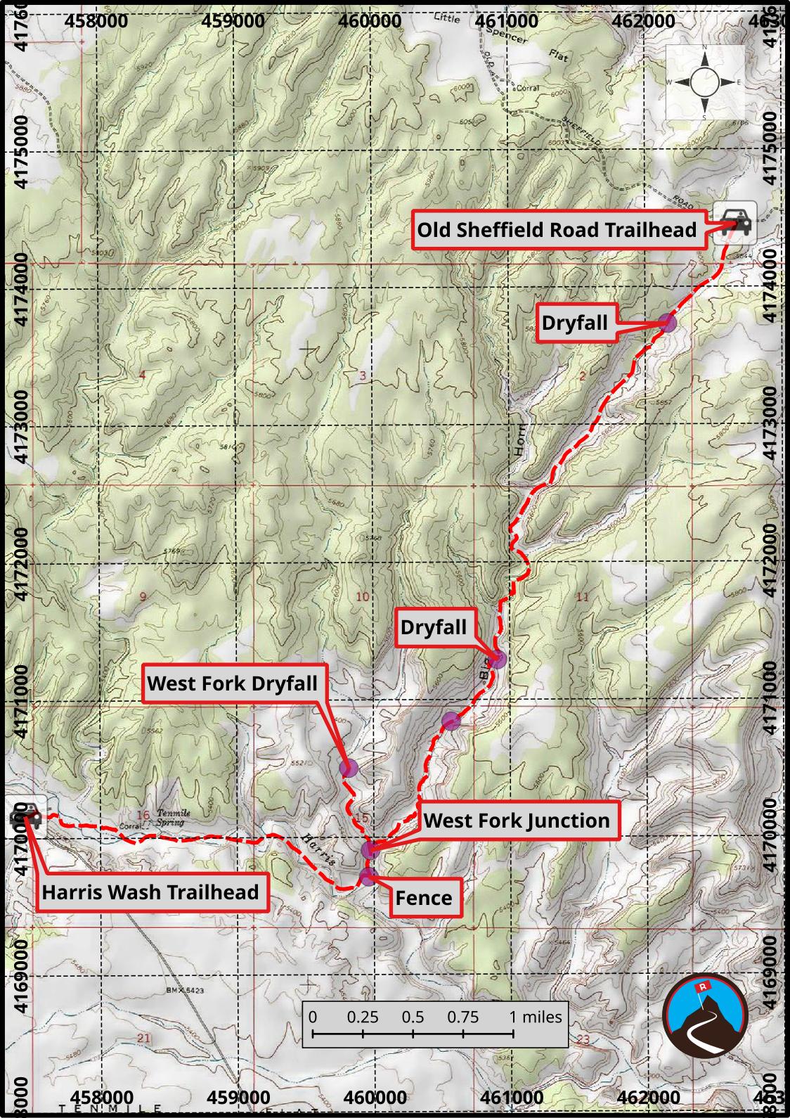 From Old Sheffield Road to Harris Wash (One-way hike, shuttle required)