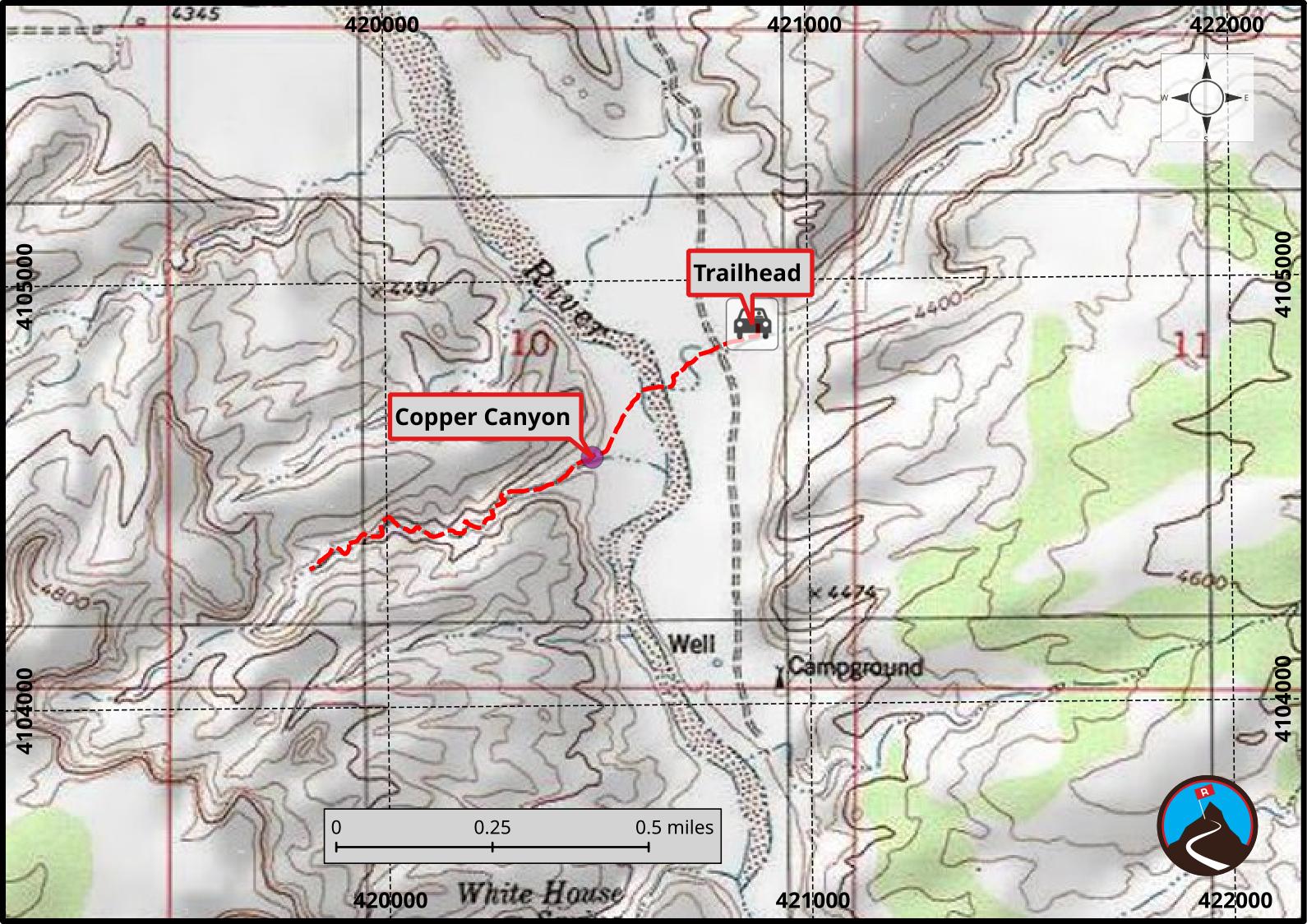 Copper Canyon is the first canyon downstream of the crossing. The walls quickly raise, but the first section isn't particularly narrows.