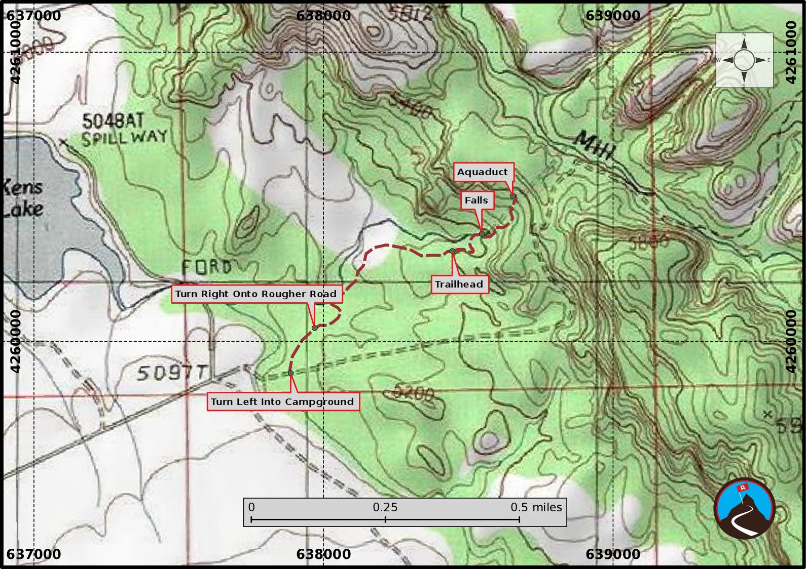 From the trailhead, a well worn social trail meanders down to the picturesque base of the falls. If you're more motivated, follow the higher social trail that meanders up to the outlet pipe high on the ridge that creates the falls.