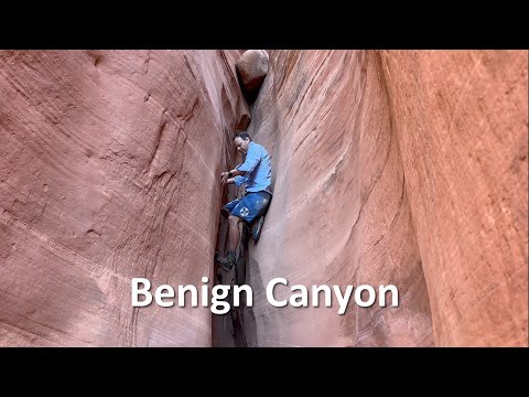 Possibly my favorite of the mini-slots in the area, Benign offers a ton of down climbing and partner assist fun. There are a couple of potholes as well, keeping things interesting. This is a good one for intermediate canyoneers looking to practice team work and creative anchors. Many (most) of the small drops can be downclimbed, but the ones that can't will require good and creative natural anchor building. Very fun!