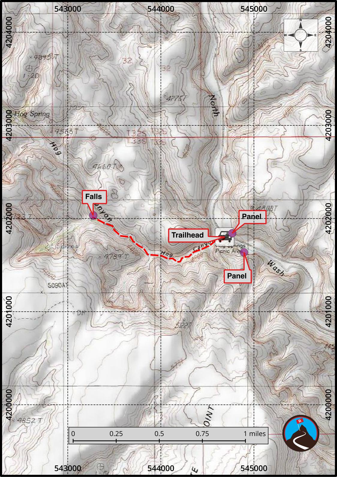 From Hanksville, follow highway 95 south to mile post 33.2 (which is 33.2 miles south of Hanksville) The Hog Spring Rest area is on the right, and the trailhead.