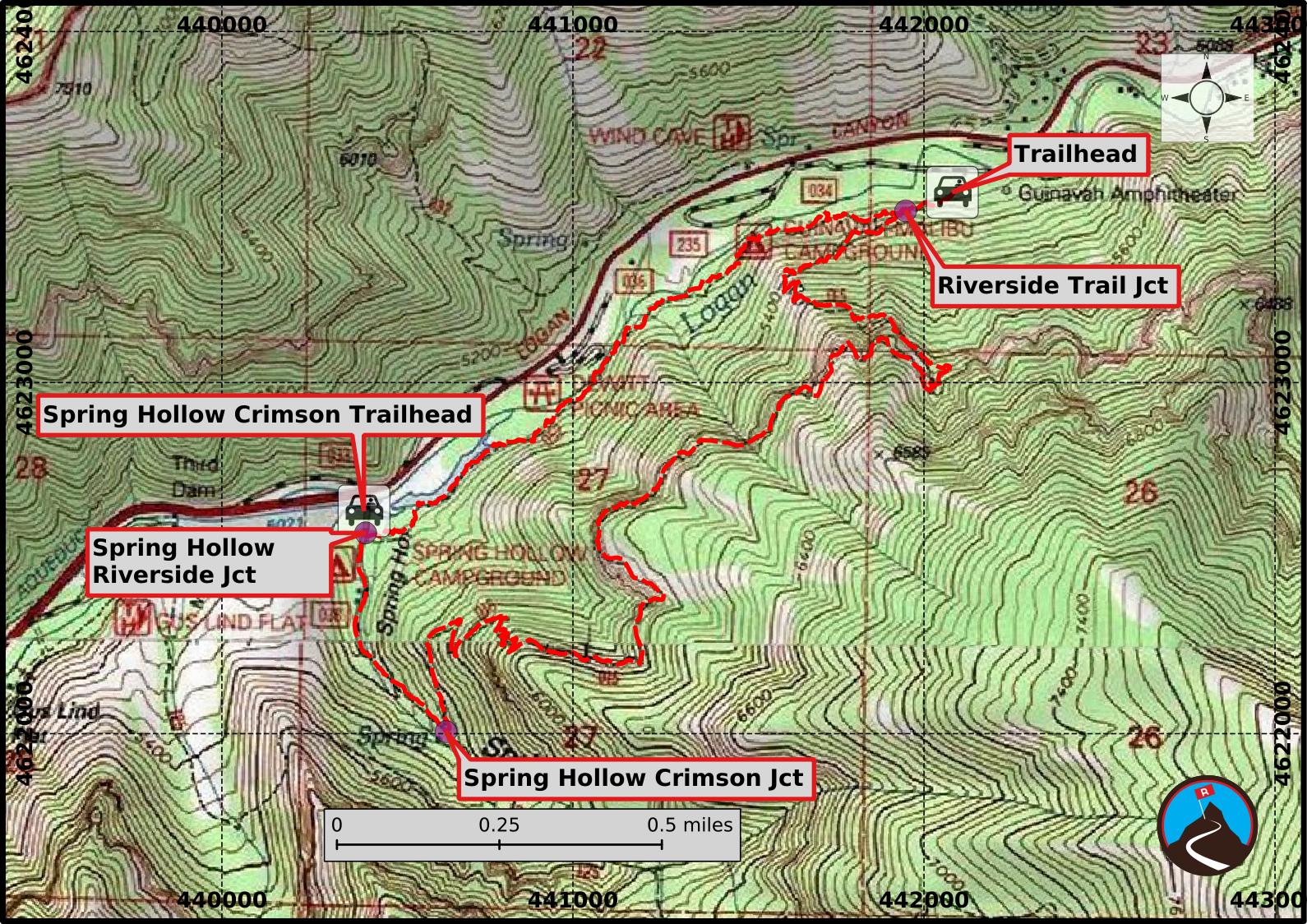 Crimson Trail Proper (4 miles / Though the trailhead sign says 3)