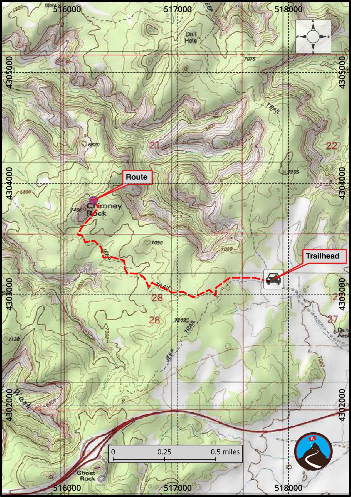 If your goal is simply to climb Chimney Rock, parking at the Ghost Rock view area of off I-70 is likely you best option. This is near mile marker 123, and clearly signed from both directions.