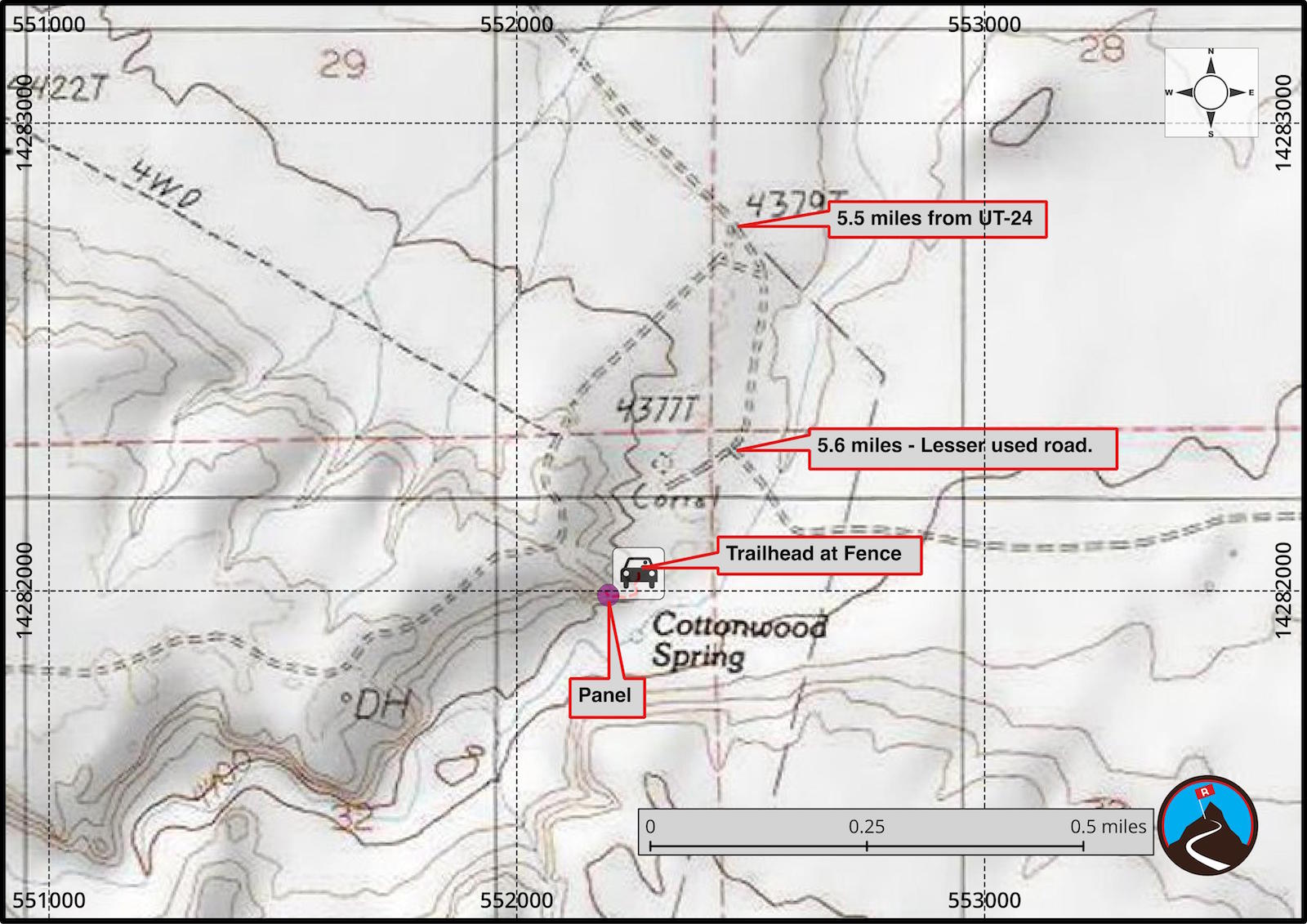 Reaching the trailhead starts by getting to mile post 145.7 on UT-24. If coming from I-70, this is about 15 miles south after taking exit 149 from I-70. If coming from Hanksville, this is about 30 miles north of Hanksville.