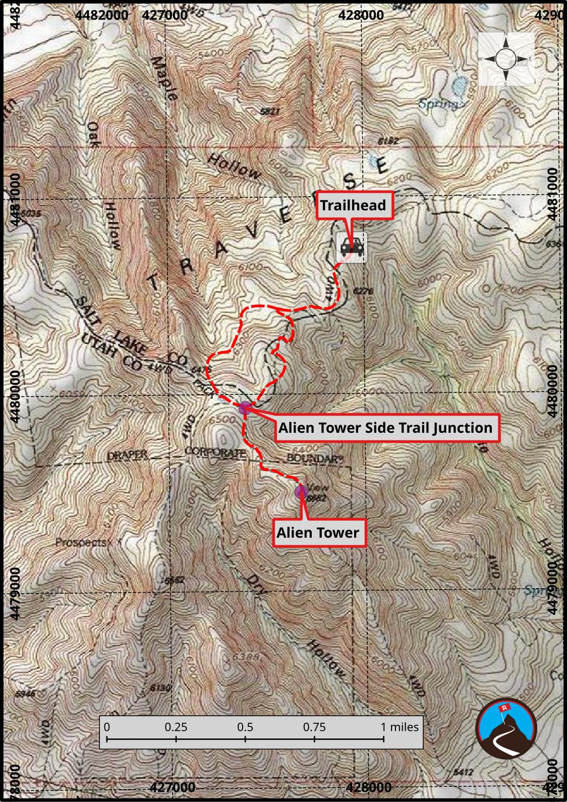The Alien Tower is a triangulation tower used to help surveyors accurately measure and map large areas of land. By placing these towers on high points, surveyors could see and measure the angles between them over long distances. This process, called triangulation, helped determine exact locations and distances on maps before the use of satellites or GPS. The tower on this hike is called View 2 by the National Geodetic Survey.