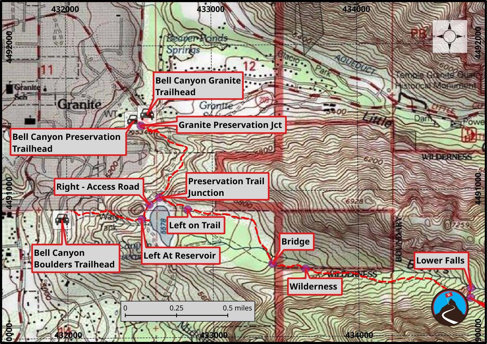 From the Granite Trailhead to the Preservation Trailhead (0.1 miles)