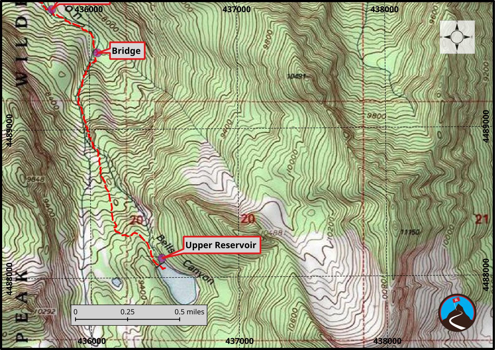 The trail continues past the upper falls to the Upper Bells Canyon Reservoir, though this is about 5 miles one way and a fairly strenuous endeavor. Snow can linger, particularly above the Upper Bells Canyon Falls, well into mid-summer in a heavy snowpack year. The elevation gain and distance from the trailhead to the reservoir make for a long, strenuous day for most. Be prepared if venturing that far.