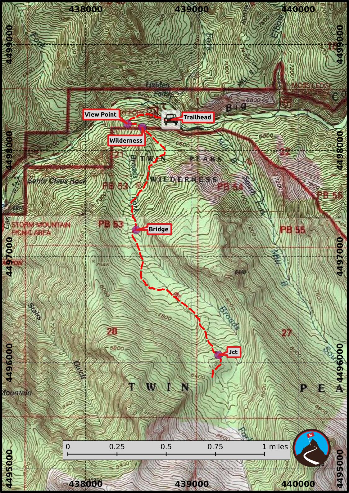 From the trailhead, the Broads Fork trail begins on the south-west corner of the parking lot. A small wooden sign marks the start of the path. Be sure you are on the correct path. The far more popular Lake Blanche trail starts on the east side of the parking lot.