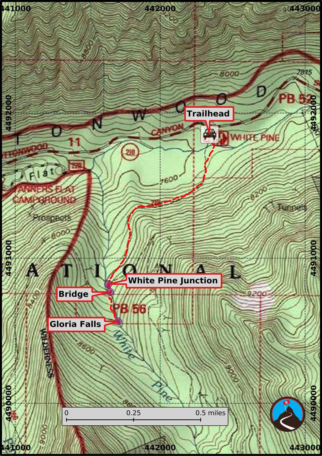To White Pine Junction (1 mile / 30 minutes)