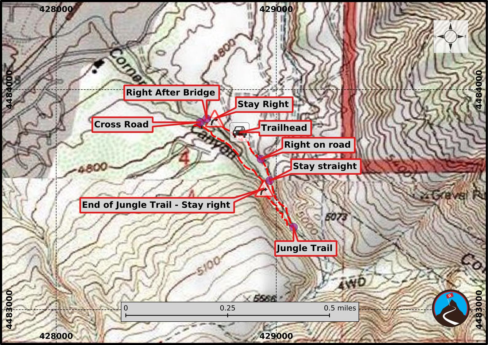 The trailhead is the Carolina Hills Trailhead on the southeast side of the Salt Lake valley. The trailhead is at 13625 Carolina Hill Ct E, Draper. The area is a bit of a maze, phone navigation recommended. Start by going east on 13800 S. When 13800 S ends, go right under the bridge, then left on Highland Drive. Follow Highland Drive for about 0.6 miles to Bechers Brook Way on the right. Go right and follow Bechers Brook Way for 0.2 miles, then take the first right at the traffic circle to Aintree Ave. Follow Aintree Ave to the next traffic circle, then go right on Tuscalee Way. Quickly take a left off Tuscalee Way onto Carolina Hill Ct. Follow it to its end and the trailhead.