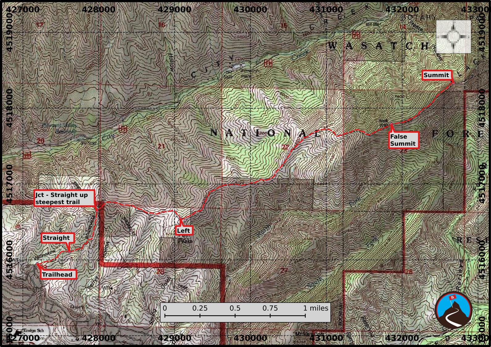 | Jct - Straight up steepest trail |
