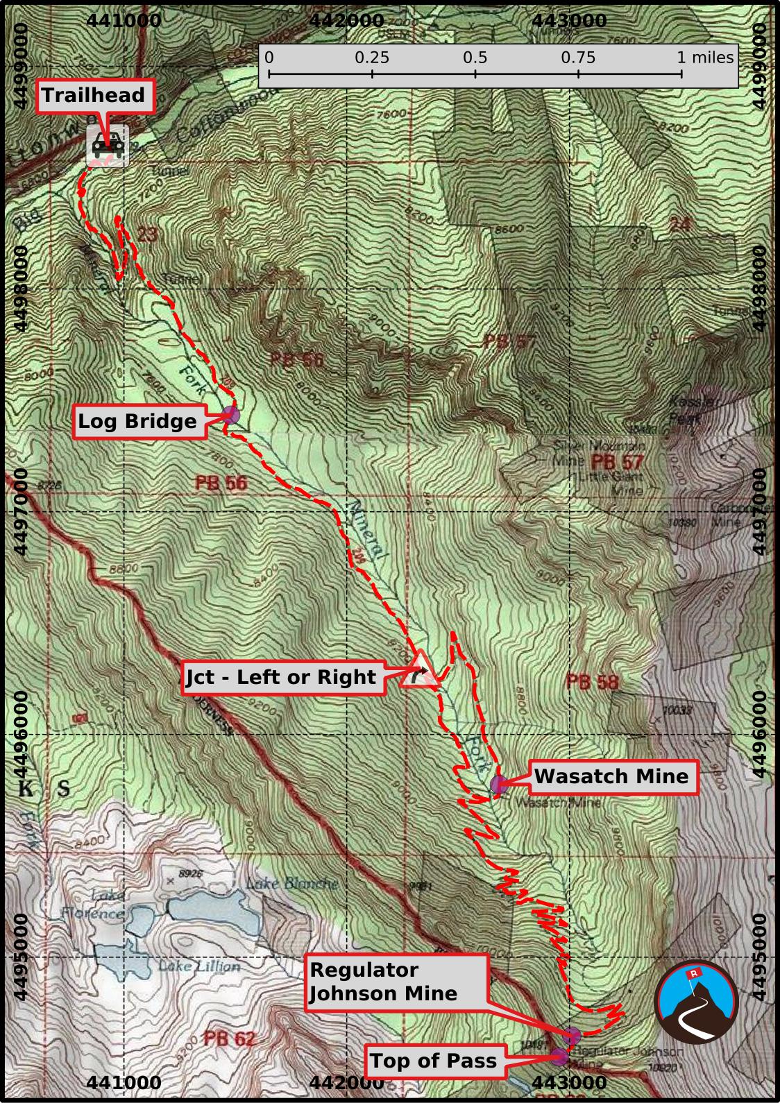 To Wasatch Mine (3.1 miles / 1.5-2 hours one way)