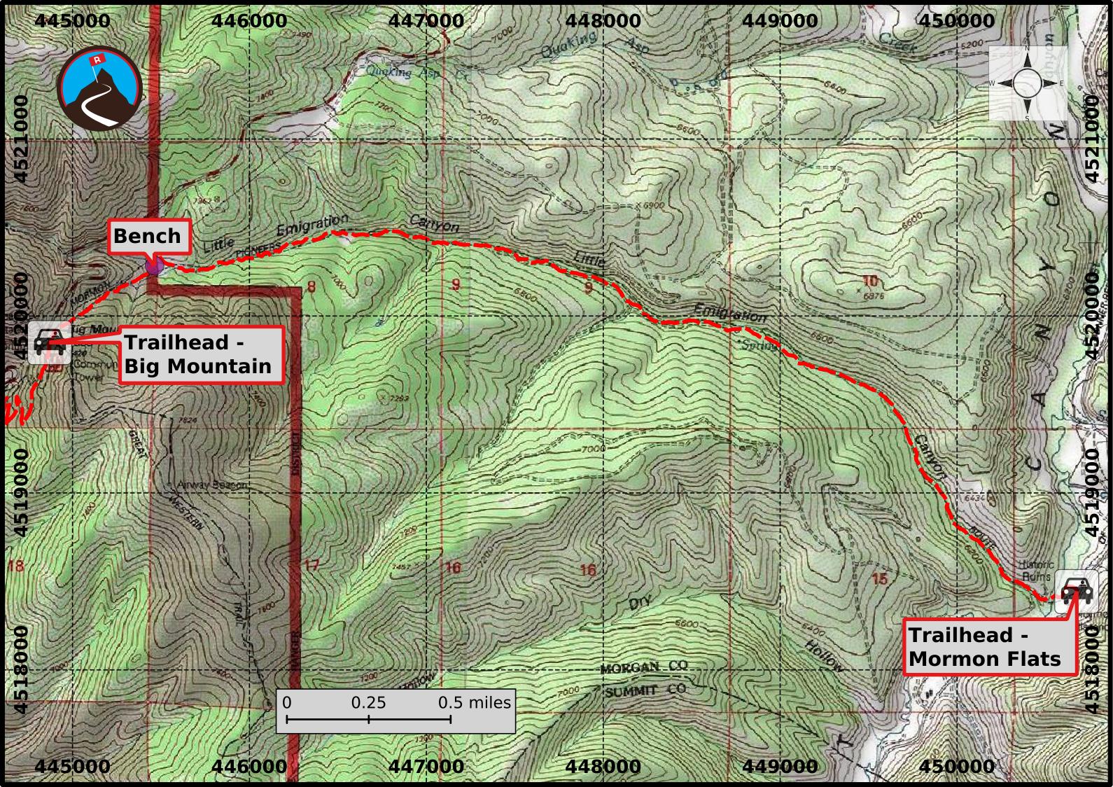 Follow Jeremy Ranch Road for 5.2 miles. Just after the golf course, the road turns to dirt but is well-graded and suitable for most vehicles when dry. The trailhead is on the left, with a side road to a parking and picnic area. The trail starts from the picnic area.
