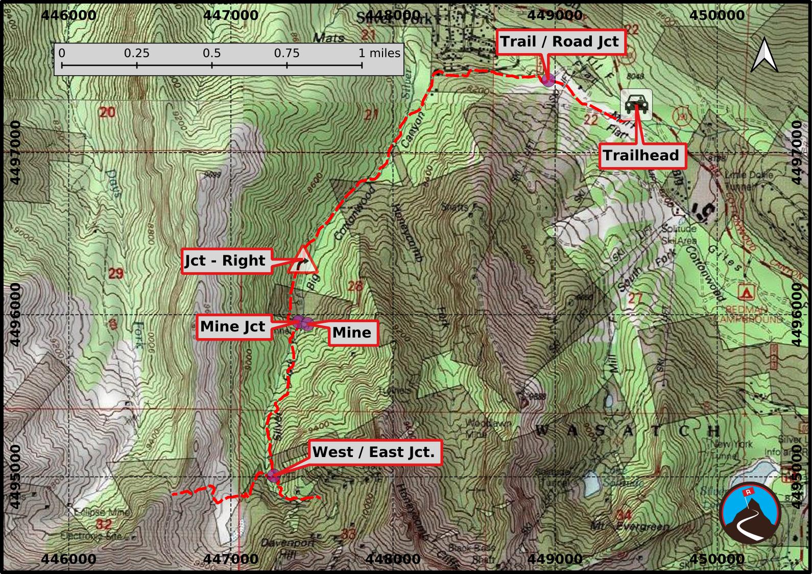 Drive up Big Cottonwood Canyon. The trailhead is 12.2 miles up the canyon at Solitude Entrance 1. The trail starts on the west side of the parking lot.