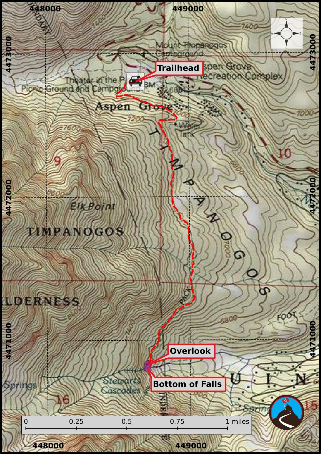 The first step of the hike is the most important. Be sure you are on the correct trail! The Stewart Falls trail starts on the south side of the Aspen Grove Trailhead parking lot. This is near the pit toilet. The Mount Timpanogos trail also leaves from this trailhead, closer to the main road, and it NOT the one you want!