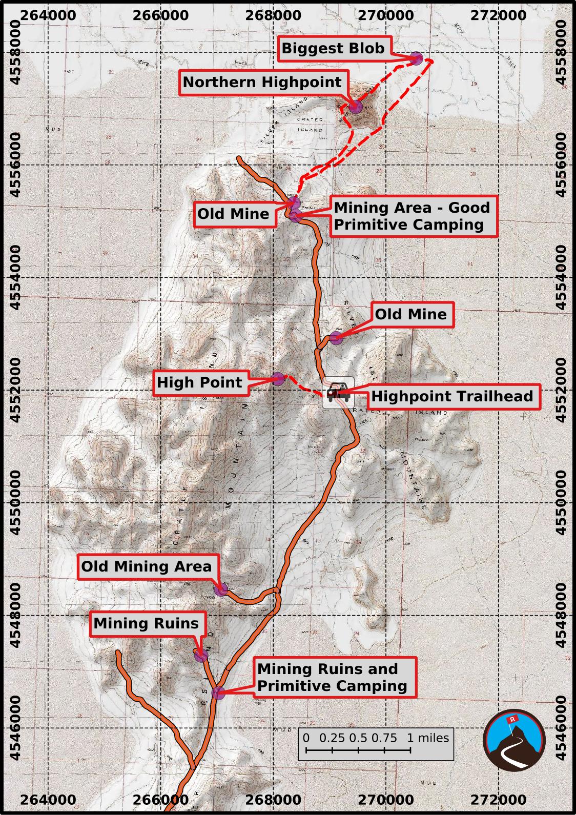 Reaching Crater Island starts from the northern end of the Silver Island Scenic Byway. To reach the northern end of the scenic byway: