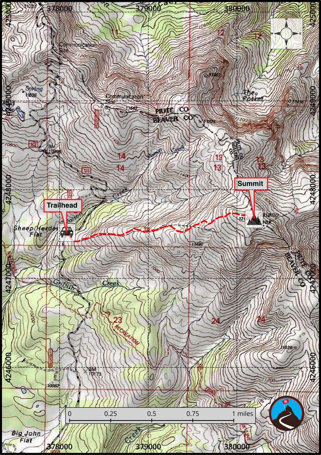 Delano Peak is both the Piute and Beaver county highpoints, tucked in the Tushar Range, the third-highest range in the state. This is a family friendly highpoint with easy access, a good and generally easy to follow trail, and stunning views from its summit. There are many different approaches for reaching the summit, such as from Poison Creek, or the communications tower to the north. For my money, however, the official trail offers as easy access as any, and keeps traffic and impacts to a minimum.