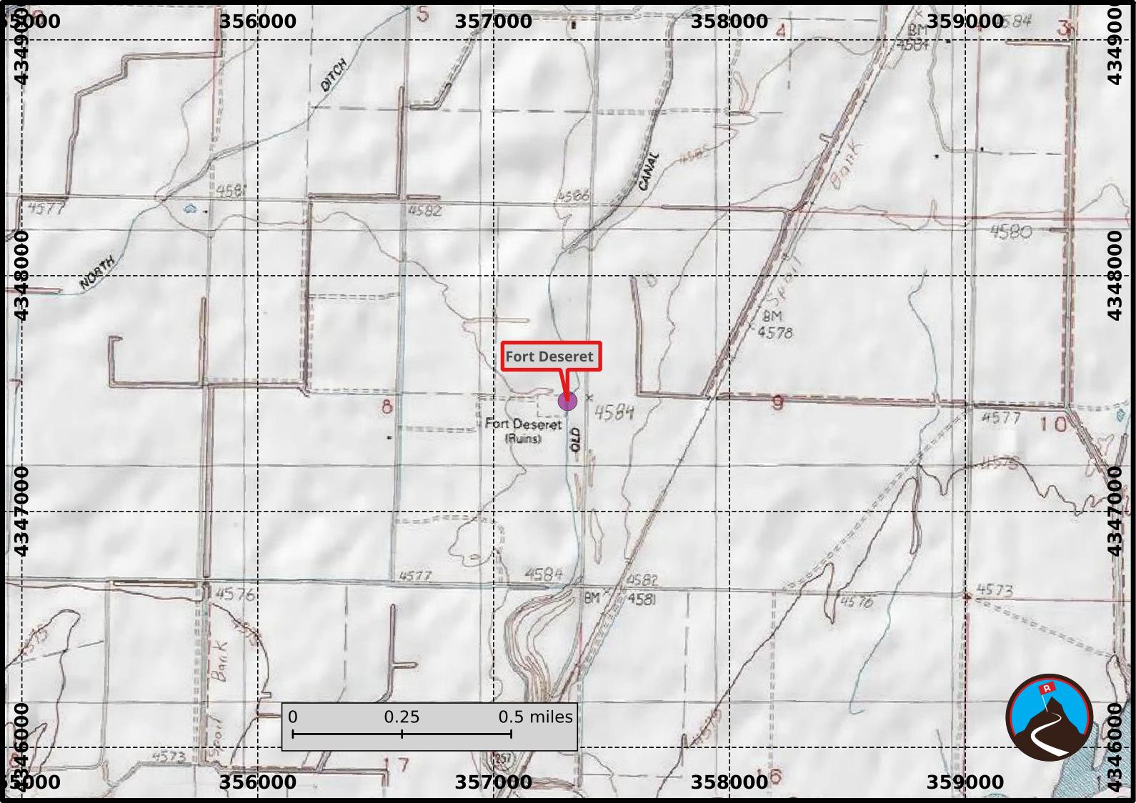 From Delta, head west on US-50 toward Ely, NV. About 5 miles from downtown Delta, turn left (south) on UT-257. Follow this for about 4.5 miles to mile post 64.7. The fort is on the right (west) side of the road.