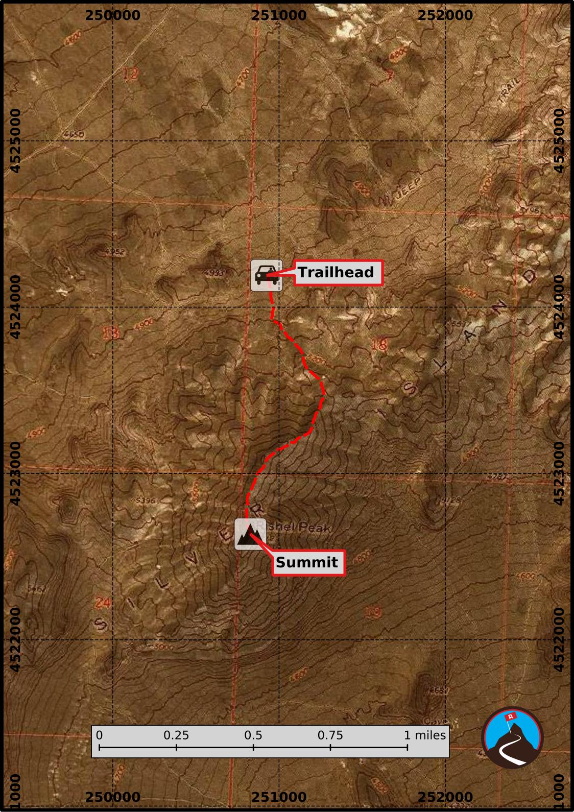 From the parking area, the north ridge is visible. Hike cross country south and a little east up the nearest ridge to reach the north ridge proper. Staying on or near the ridge seems easiest.
