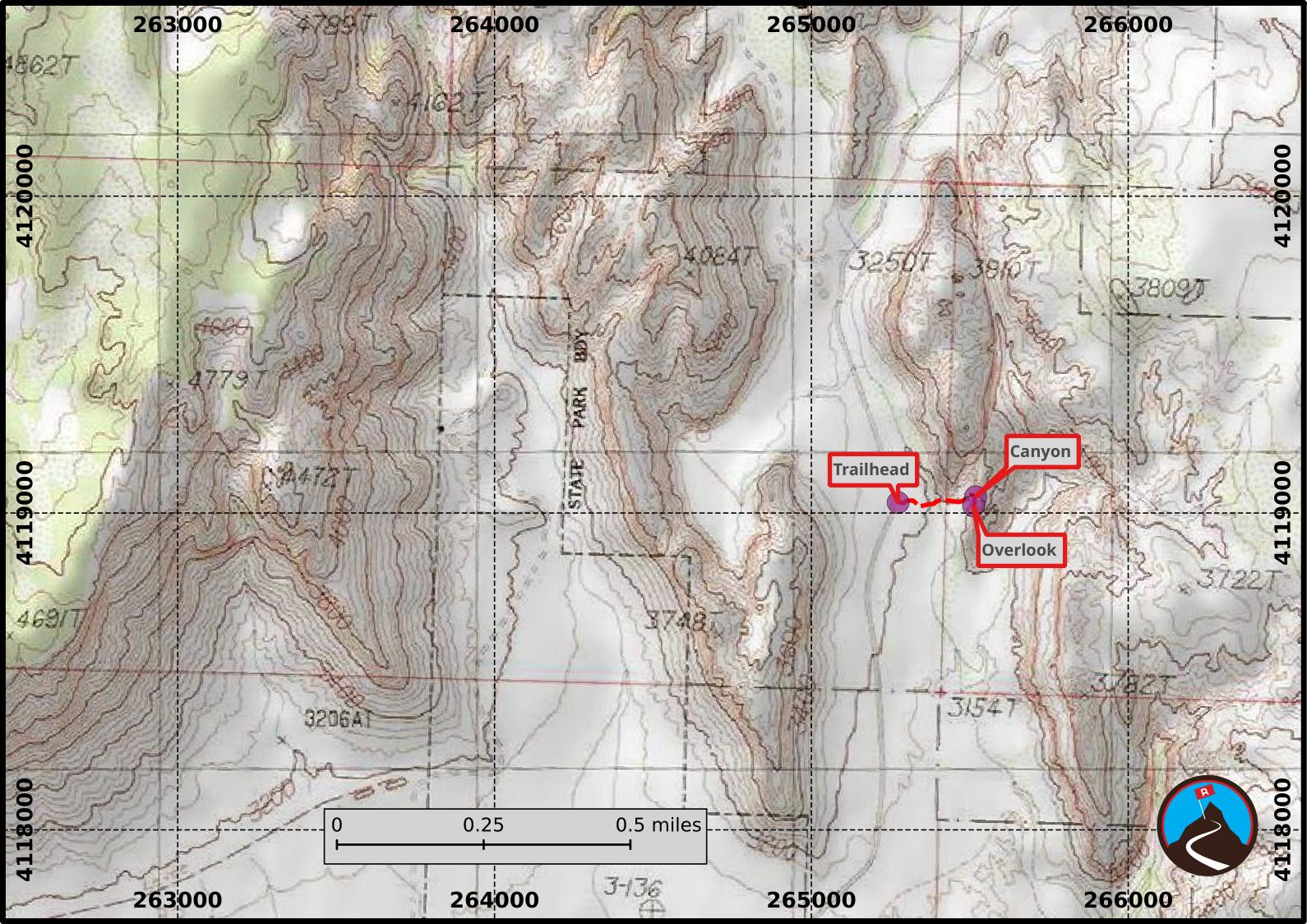 From the south entrance of the park on Snow Canyon Road, reset your odometer as you enter the park. At 0.6 miles the Jenny's Canyon Trail is on the right.