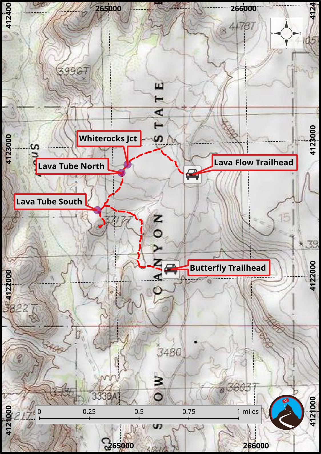 Butterfly Trailhead (about 0.7 miles one way to the south lava tube)