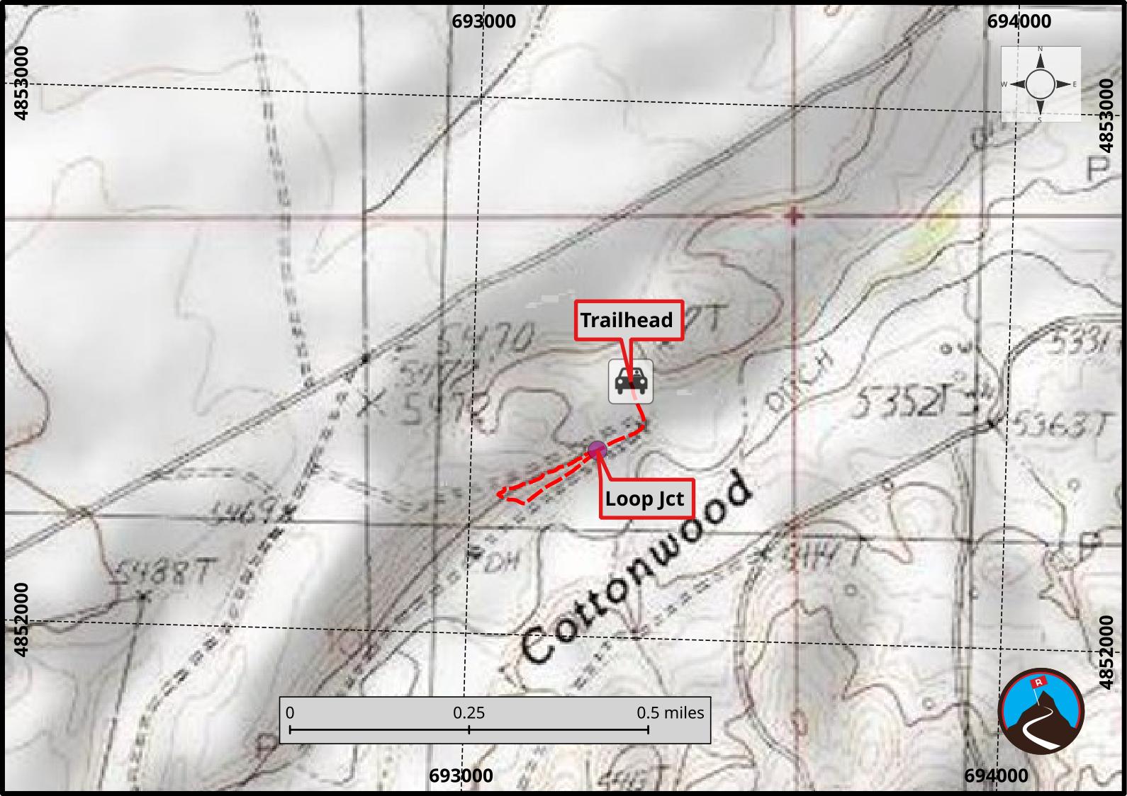 Stay slightly right at the junction to stay on Upper Cottonwood Creek Road, and follow it for 2.2 miles to Legend Rock road on the left.