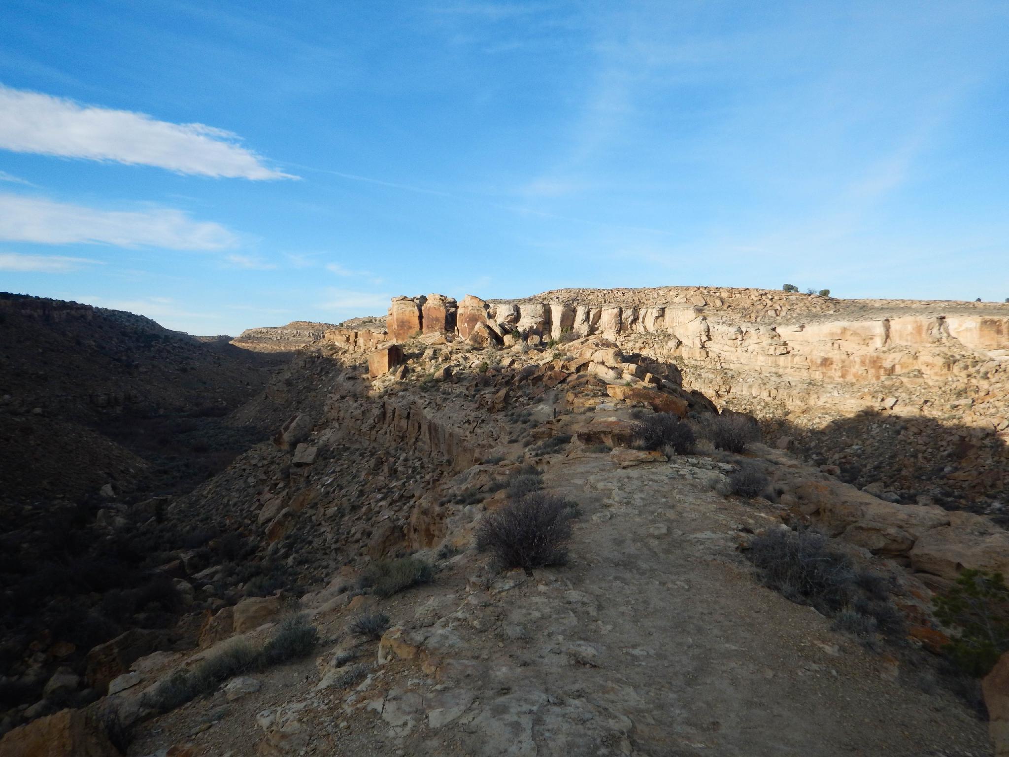 The rock art is at the trails end on the large blocks.