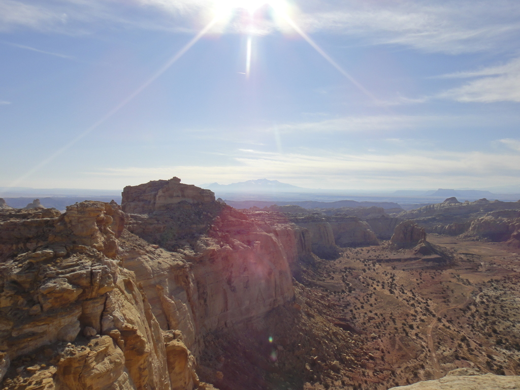 Looking toward the Henry mountains. Ding Dang dome and Factory Butte visible - Chute Buttress