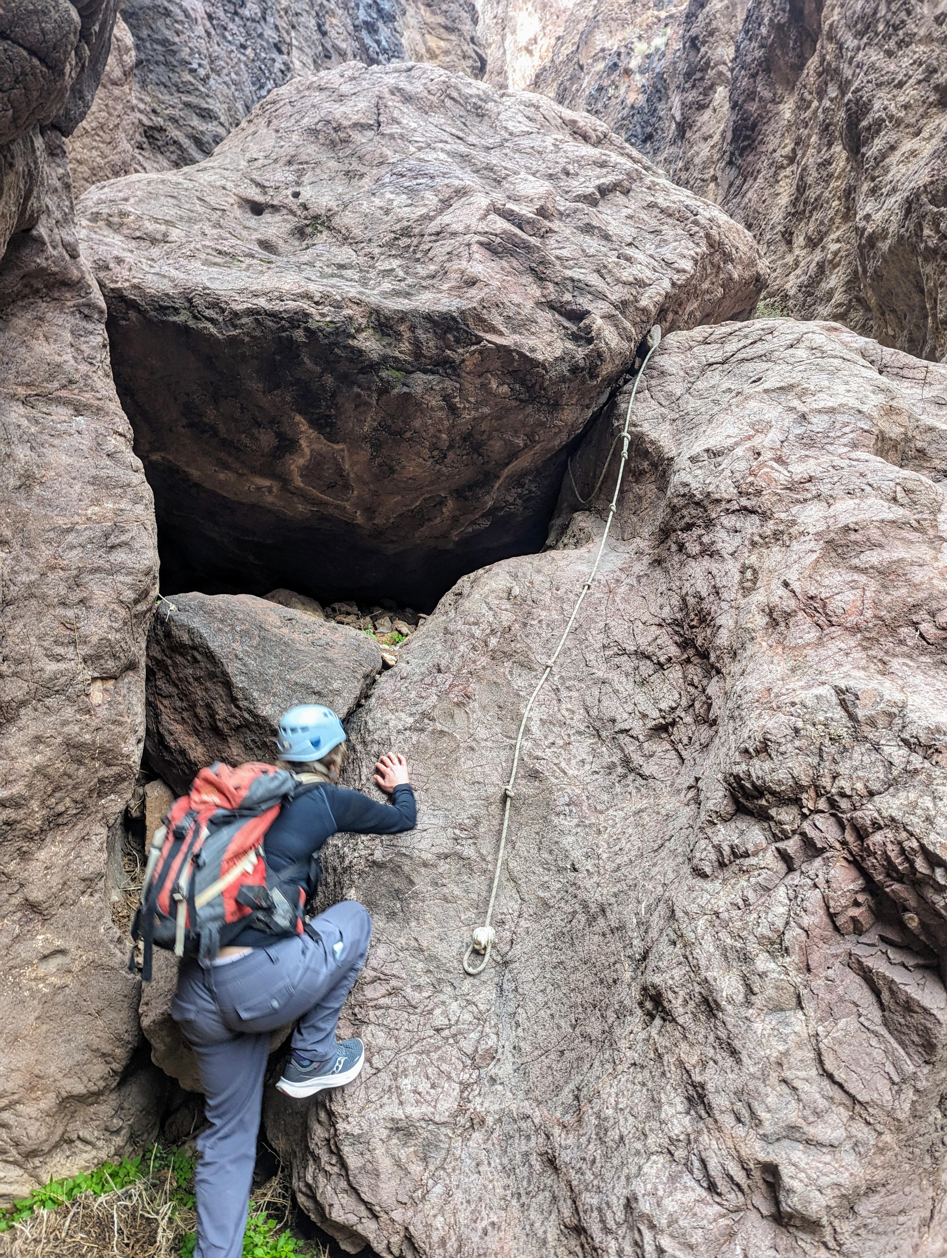 One of the fixed ropes in Sheepbone Canyon