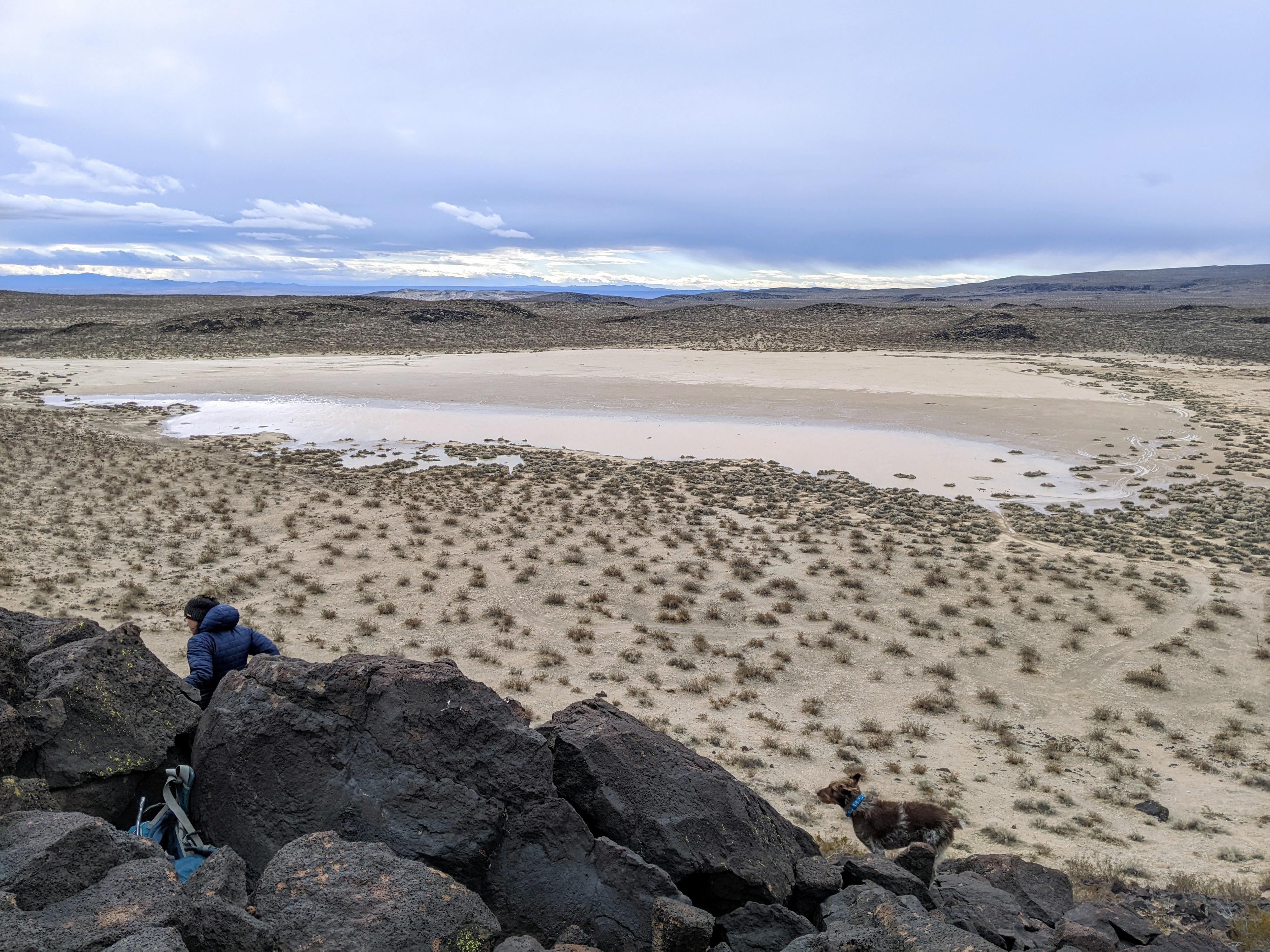 View of the dry lake bed from near the panels.