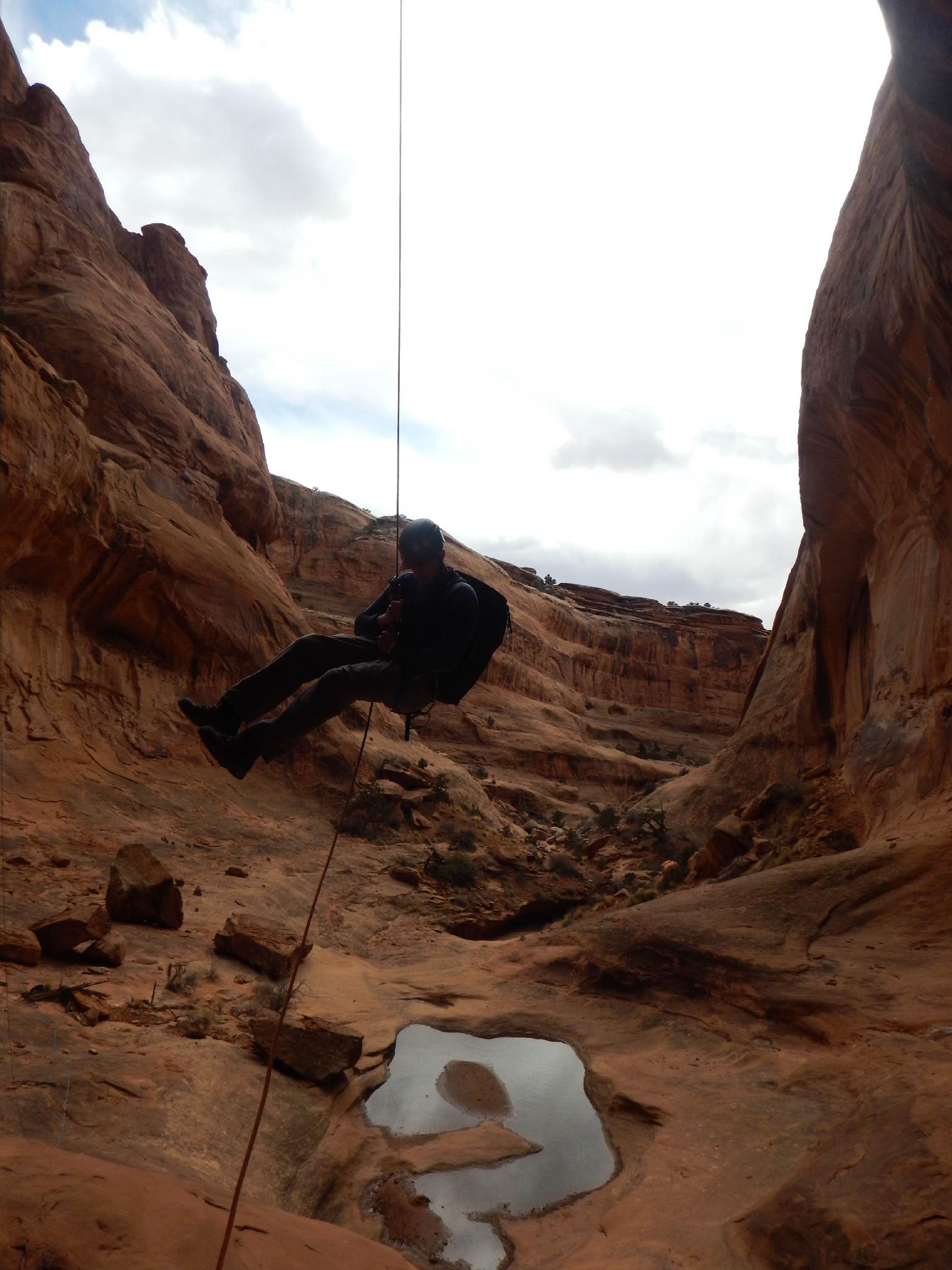 Kevin Christensen Rappelling in Lockjaw Canyon