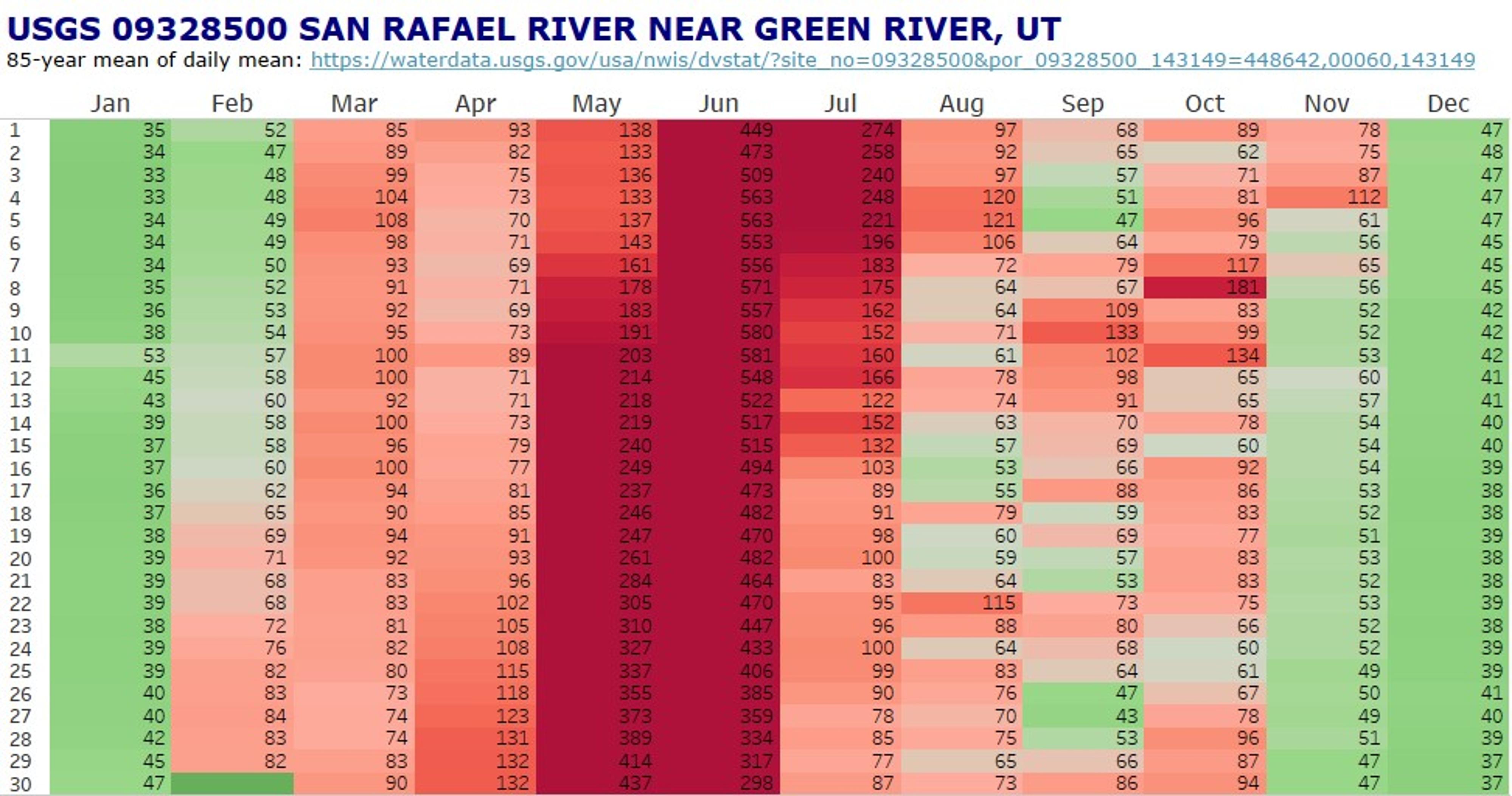 San Rafael river daily CFS mean from the USGS
