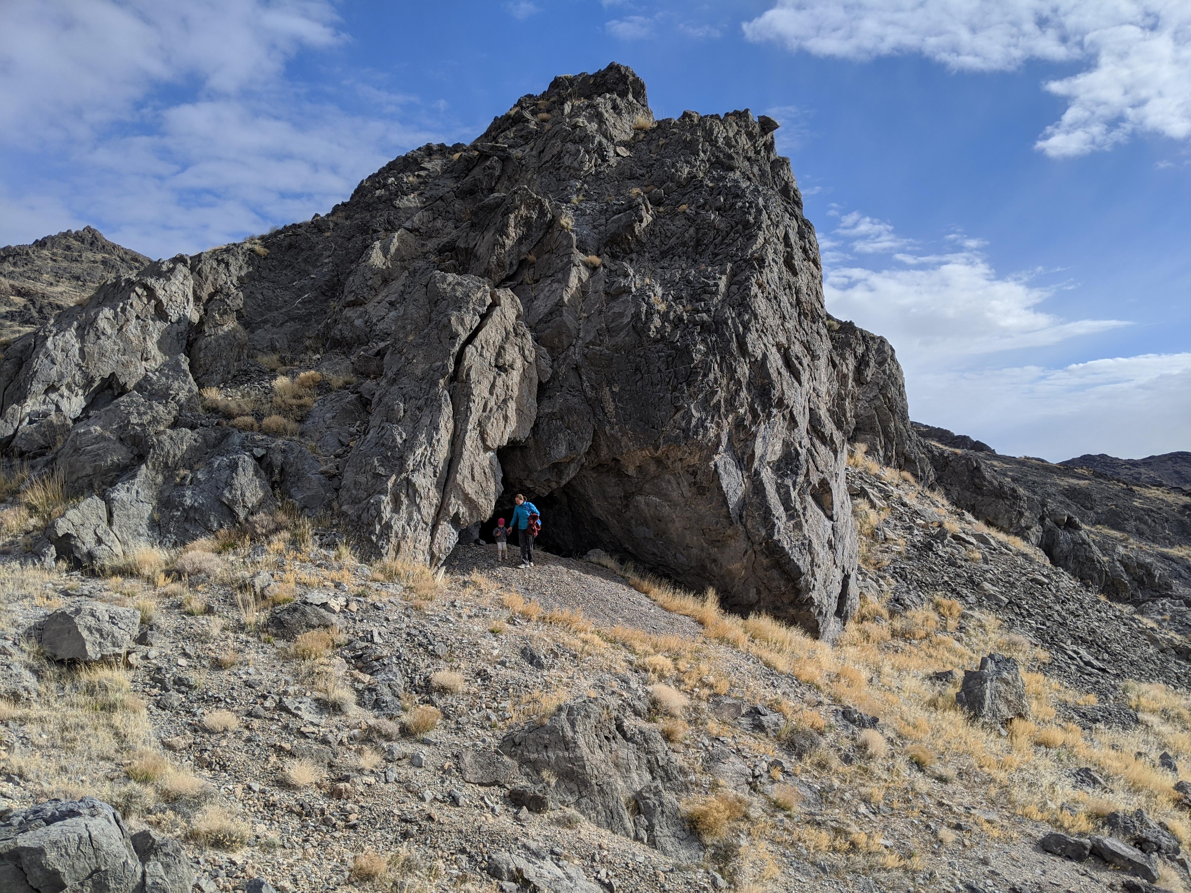 Checking out a cave near Cave Canyon