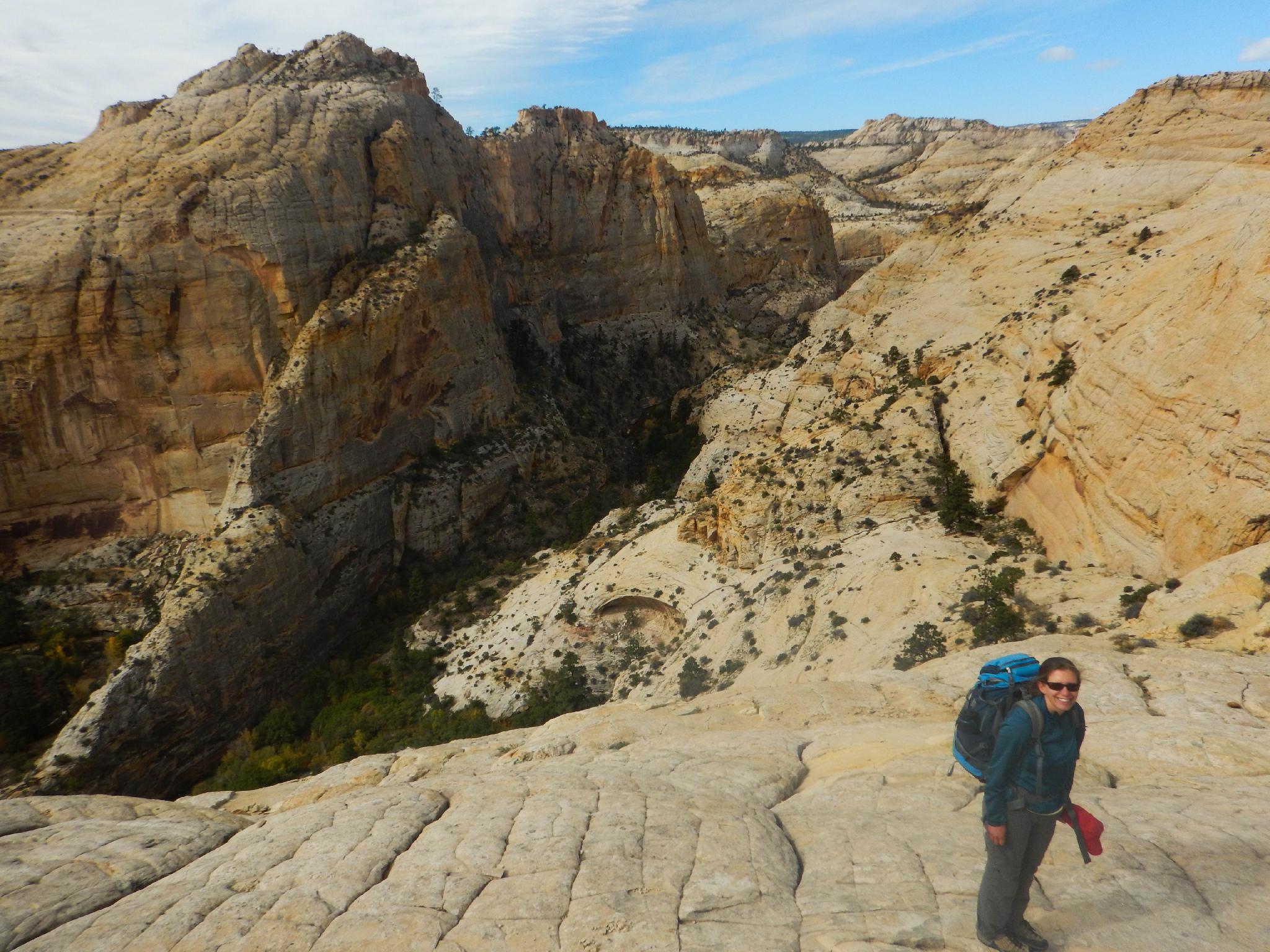 Diane on the way down to Death Hollow on a very windy day.