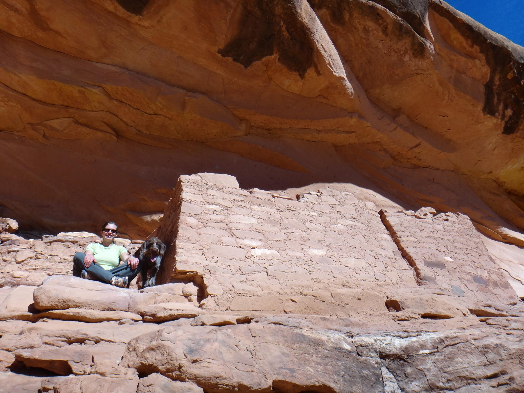 Diane and Lucy at the best ruin in the Mule Canyon Towers