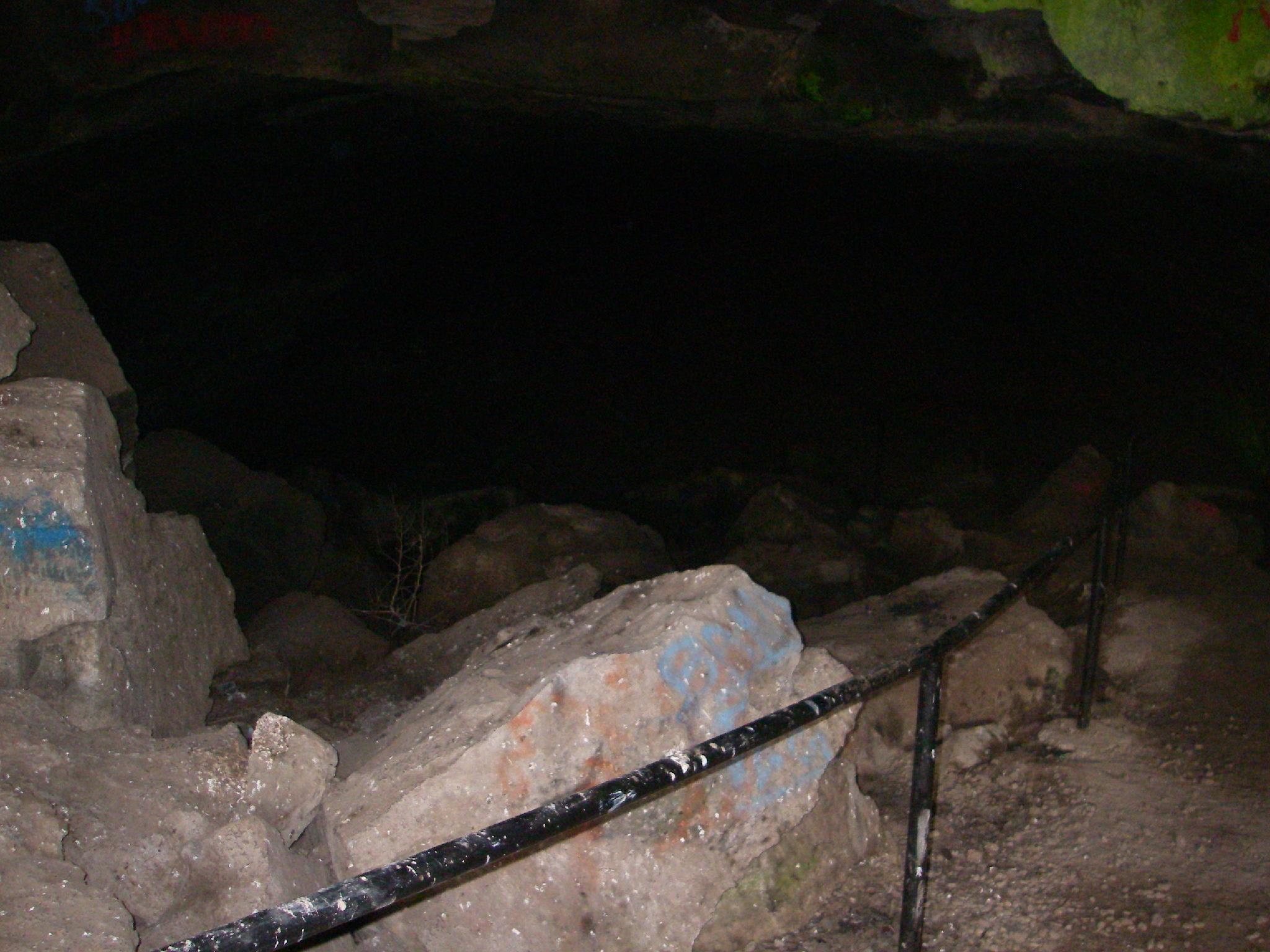 The hand rail leading into the cave.