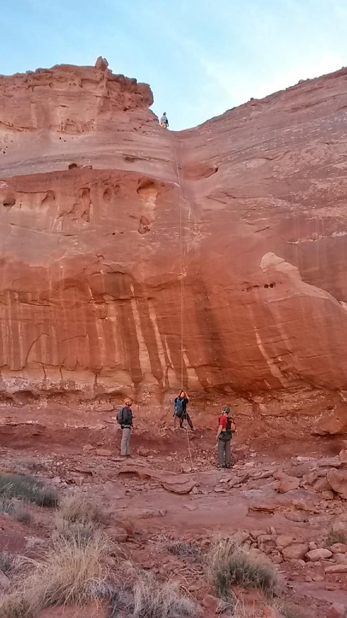 Optional first rappel into the canyon