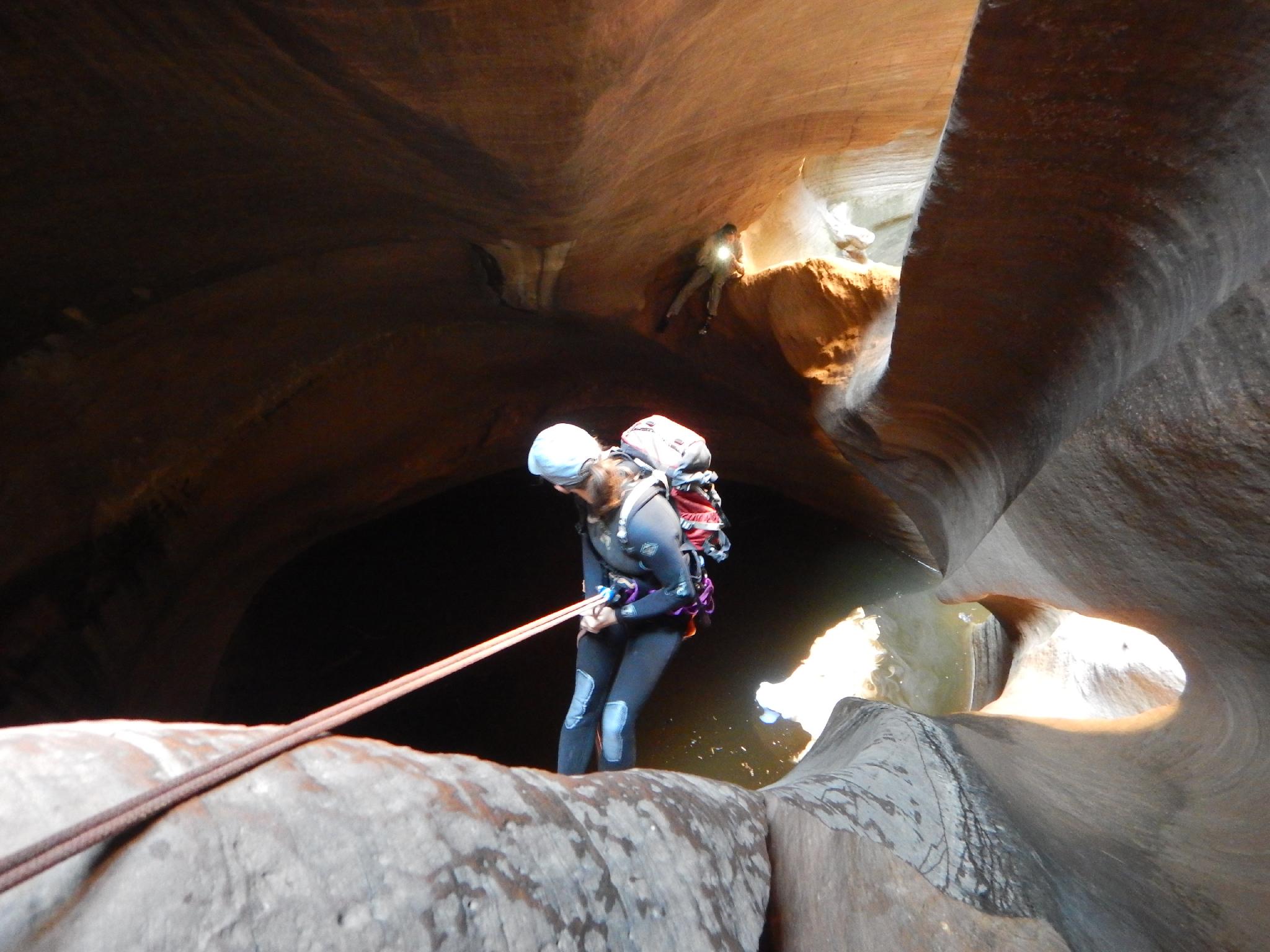 Diane rappelling into the Cathedral